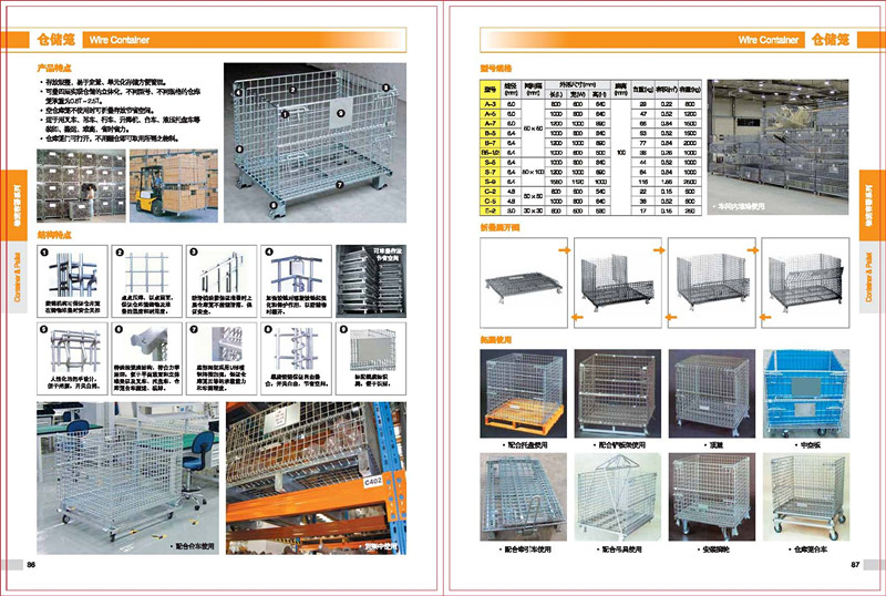 倉儲籠的特點: 1.裝貨后可相互堆疊至四層,實現(xiàn)立體化存儲。在不使用時也可以進行折疊堆放. 2.配合叉車,升降機,吊車等設備作業(yè),可用于運輸,搬運,裝卸,存儲保管等各個物流環(huán)節(jié)中。 3.使用強力鋼條電焊而成,底部以U型槽鋼焊接,使整體結構更加堅固。 |